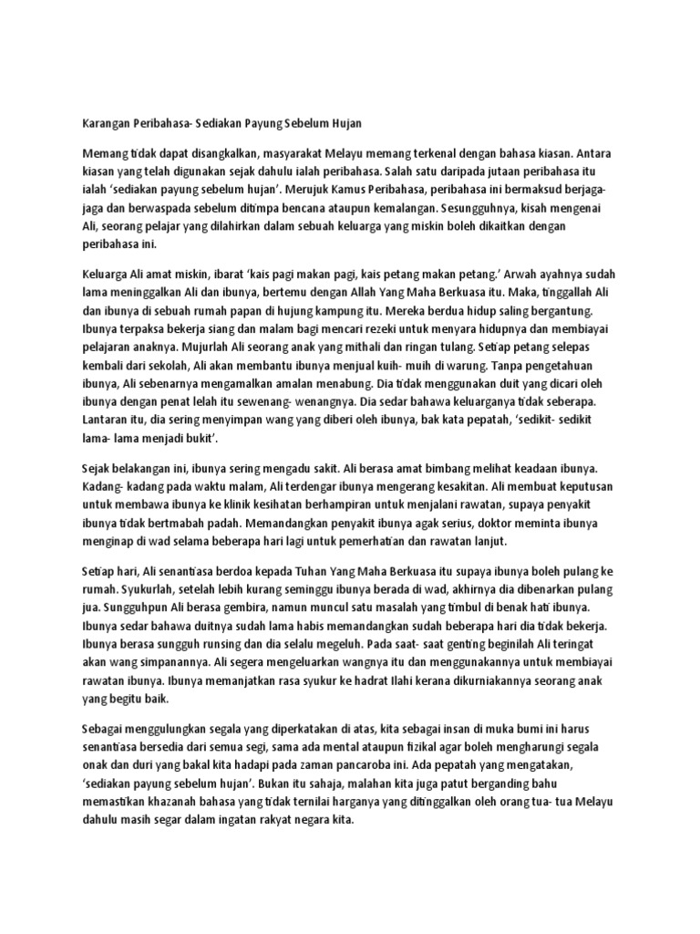 Contoh Karangan Dengan Peribahasa