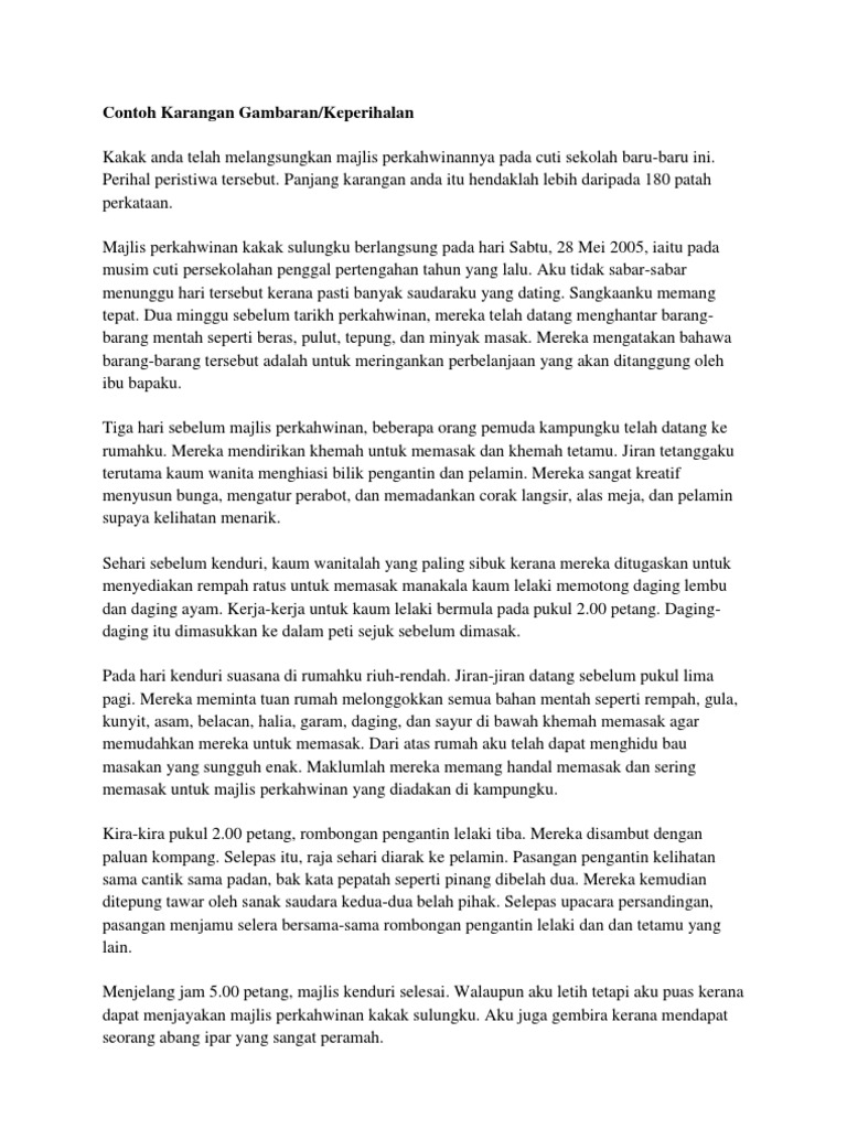 Contoh Karangan Gambaran Keperihalan Kakak Anda Telah Melangsungkan Majlis Perkahwinannya Pada Cuti Sekolah Baru Baru Ini