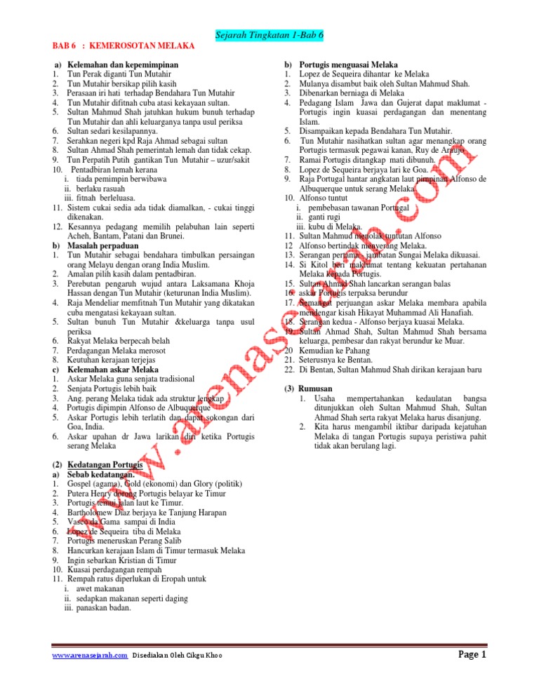 Contoh Soalan Sejarah Tingkatan 2 Bab 6-7