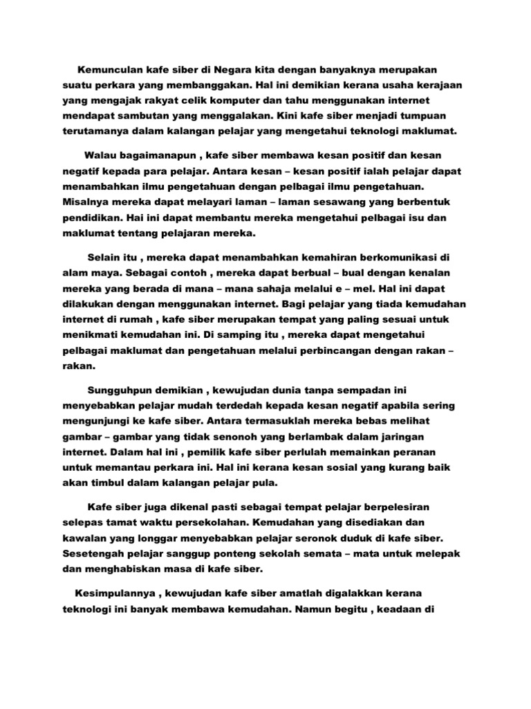 Contoh karangan Bahasa Melayu PT3 ini bukan sekadar untuk dibaca tetapi perhatikan setiap penggunaan ayat kata wacana penyelitan peribhasa dan gaya bahasa yangmenarik digunakan dalam karangan ini. 1Pelajar dikehendaki meringkaskan petikan berdasarkan kehendak soalan supaya menjadi tidak melebihi 80 patah perkataan. Pastikan sama ada pelajar dikehendaki memberikan hujah-hujah satu pihak sahaja atau daripada kedua-dua pihak.
