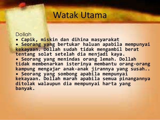 Watak dan Perwatakan Novel Tingkatan 4 WATAK DAN PERWATAKAN Watak Utama. Baik dan murah hati. Apr 02 2011 43Menghuraikan perwatakan luaran 8Pelajar dapat menyenaraikan drama dan dalaman watak drama yang sifat luaran dan dalaman watak dikaji.