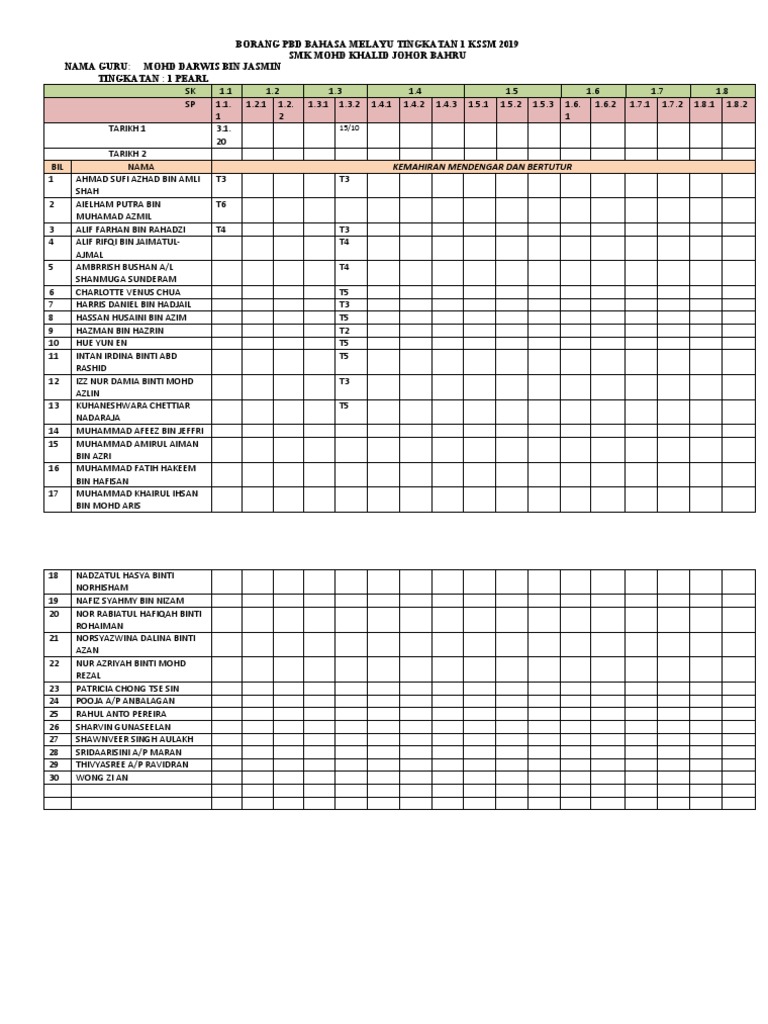Borang pbd bahasa melayu tingkatan 1. Nama murid 1 amiruzaidin bin amiruddin 2 hajiah binti abd malik. Sebagai pembelajaran untuk pembelajaran dan tentang pembelajaran. Komunikasi sosialisasi dan kemahiran asas berkaitanDskp subjek teras kssmpk tingkatan 3 bahasa melayu komunikasi english for communication matemati.