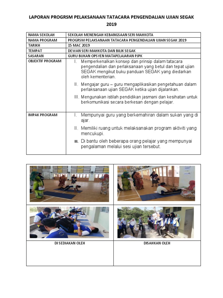 Laporan Progrsm Pelaksanaan Tatacara Pengendalian Ujian Segak 2019