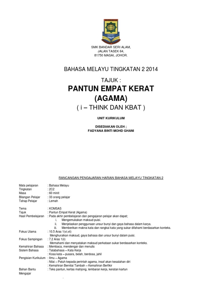 Rancangan Pengajaran Harian Bahasa Melayu Tingkatan 2 Pdf