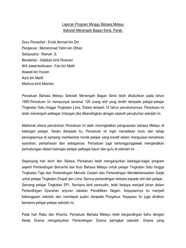 Bahasa Melayu Contoh Laporan Sekolah Menengah Tingkatan 1