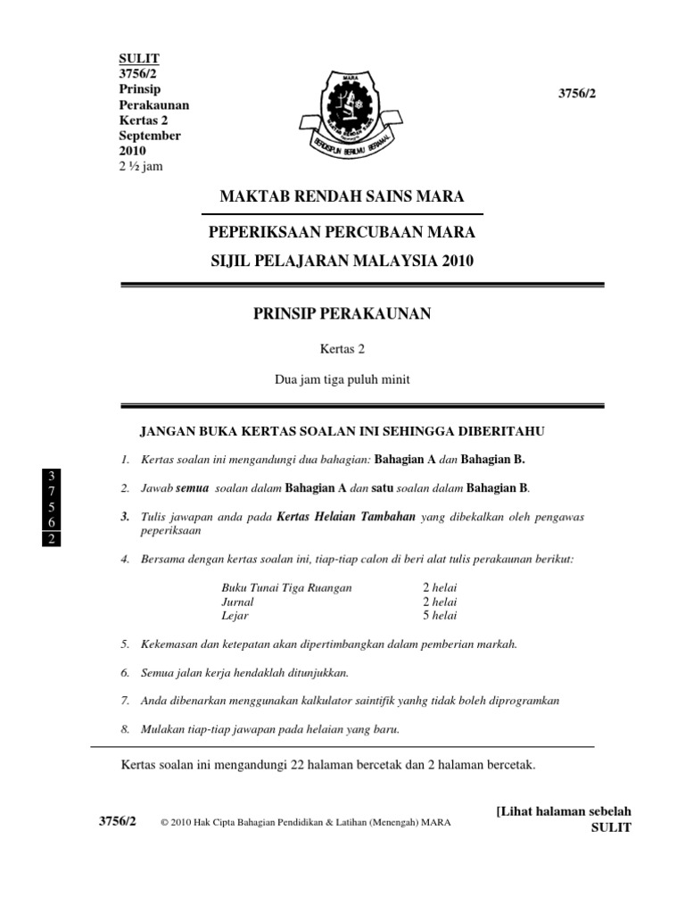 Prinsip Perakaunan Kertas 2 Spm Mrsm 2010 Pdf