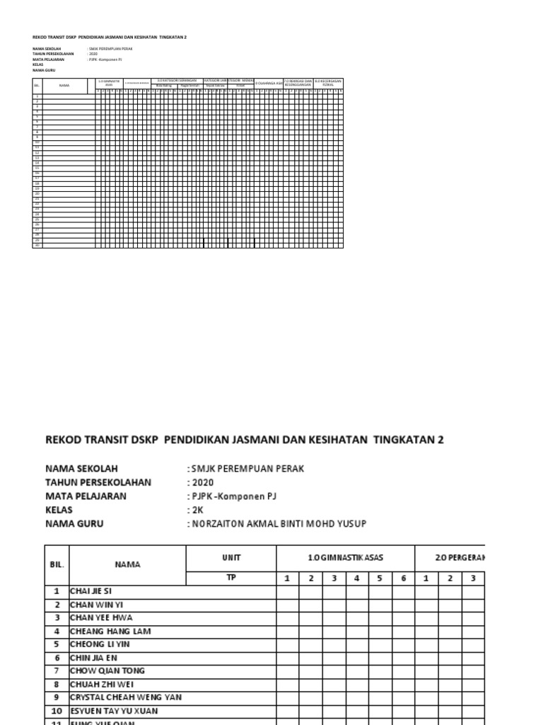 Borang Transit Pjk Tingkatan 1 Dan Tingkatan 2