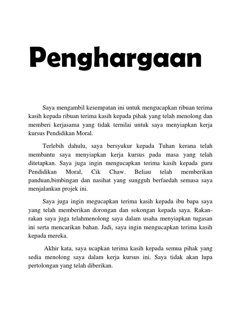 Contoh Penghargaan Kerja Kursus Pendidikan Moral Tingkatan 5