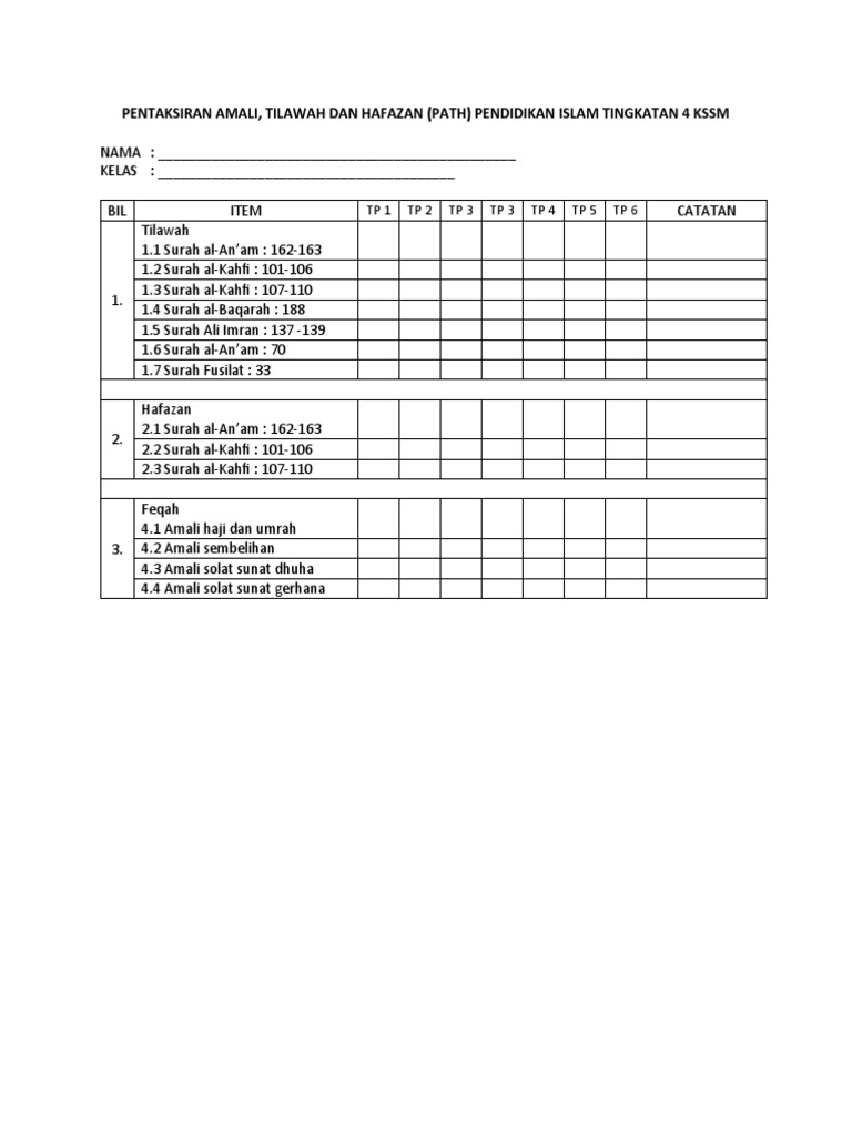 Borang Pbd Pendidikan Islam Tingkatan 2