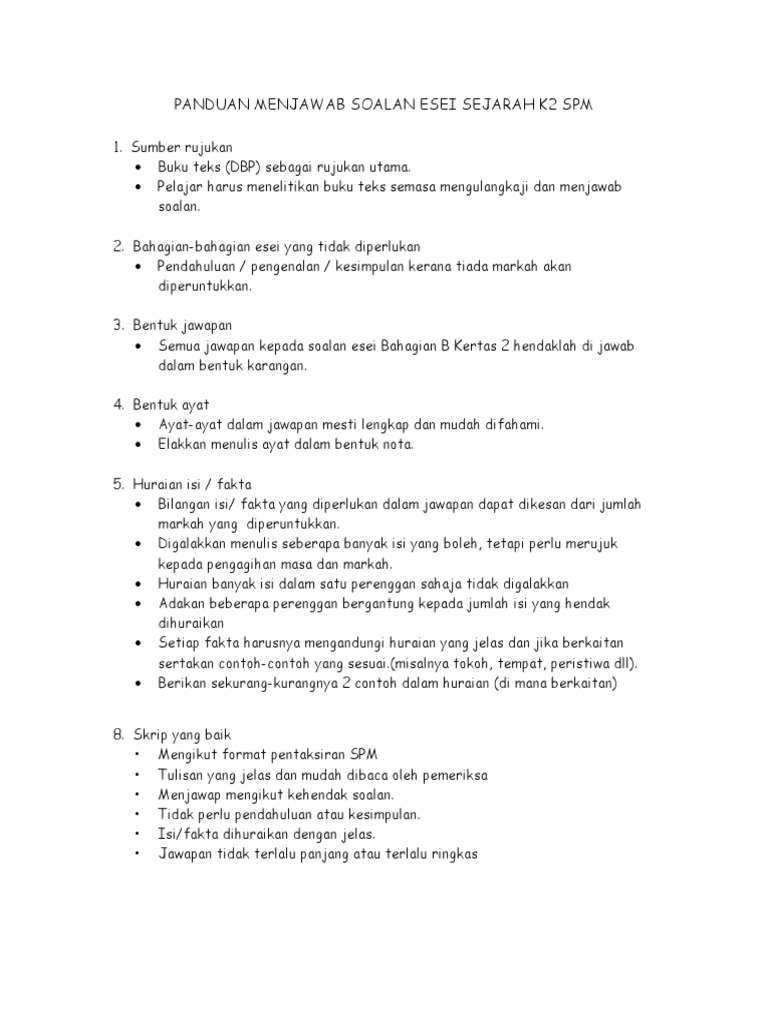Panduan Menjawab Soalan Esei Sejarah K2 Spm 2